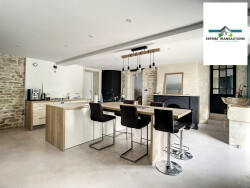 Elle offre une surface habitable de plus de 280m² composée d'une entrée, d'une cuisine aménagée et équipée avec accessibilité à la terrasse et la piscine. Un séjour composé d'une salle à manger et d'un salon de 65m² environ donnant sur le jardin et la campagne environnante. Au RDC, un vestiaire, un WC indépendant et une buanderie, chaufferie viennent compléter l'espace.