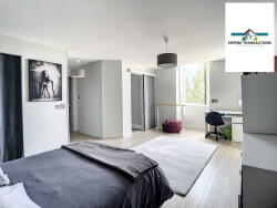 Au 1er étage, 2 grandes chambres dont une avec sa propre salle d'eau et son dressing, la seconde avec une salle d'eau non attenante ainsi qu'un WC indépendant. Une suite parentale d'une surface de 51m²avec un dressing et une salle de bain et d'eau d'une surface de 16m² se trouve également sur ce premier niveau.