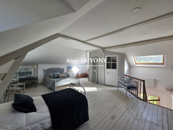 L'espace nuit se déploie sur deux étages afin de préserver calme et intimité. Le premier étage dessert trois chambres aux volumes généreux, une salle d'eau ainsi que des toilettes indépendantes. Le deuxième étage propose une quatrième chambre sous les combles, une pièce polyvalente pouvant être aménagée selon vos besoins en bureau, salle de jeux ou atelier, ainsi qu'une salle de bains avec wc.