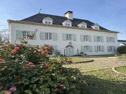 Idéalement située entre Navarrenx et Sauveterre-de-Béarn, cette élégante maison de maître bénéficie d'un environnement villageois paisible, offrant à la fois intimité et proximité de deux des villages historiques les plus recherchés du Béarn. Édifiée sur un terrain de plus de 2 hectares arborés, la propriété profite d'un accès direct à la rivière, avec un chemin privé descendant en douceur jusqu'à l'eau, créant un espace particulièrement agréable pour les pique-niques et la baignade. La maison propose de beaux volumes lumineux répartis sur trois niveaux. La remarquable pièce de réception de 52 m² constitue le coeur de la maison, agrémentée d'une cheminée d'époque et offrant un vaste espace de réception. Une salle à manger indépendante ainsi qu'une grande cuisine dînatoire équipée d'un AGA s'ouvrent toutes deux sur la terrasse arrière, assurant une belle continuité entre intérieur et extérieur. Le rez-de-chaussée comprend également une chambre double avec salle d'eau attenante ainsi qu'un vestiaire invités. L'escalier d'époque mène à un demi-palier accueillant la suite parentale, composée d'une grande chambre avec balcon, d'une salle de bains complète (baignoire et douche), d'un dressing et d'un sauna. Le premier étage offre une autre chambre spacieuse avec salle d'eau privative, ainsi qu'une pièce supplémentaire actuellement utilisée en salon/bureau. Au deuxième étage, deux autres chambres doubles ainsi qu'un espace à aménager (idéal pour la création d'une salle de bains) complètent l'ensemble. La propriété est en retrait du village et accessible par une longue allée privée avec portail. Des jardins d'agrément se trouvent sur la gauche, tandis qu'à droite un grand paddock clos offre des terres de pâturage et un potentiel d'aménagement supplémentaire (sous réserve des autorisations nécessaires). À l'arrière, la maison et sa vaste grange (220 m²) s'organisent autour d'une grande cour gravillonnée avec terrasse. Un ancien moulin à eau vient parfaire l'ensemble, offrant un cadre privilégié pour profiter d'apéritifs en soirée face à la rivière. Le village médiéval perché de Sauveterre-de-Béarn se situe à moins de 10 minutes, tandis que la charmante bastide fortifiée du XIVe siècle de Navarrenx est accessible en un peu plus de 10 minutes. La côte Atlantique, les stations de ski et la frontière espagnole se rejoignent en environ une heure. Une opportunité rare d'acquérir une propriété de caractère alliant charme, volumes et cadre exceptionnel au bord de l'eau, au coeur du Béarn.