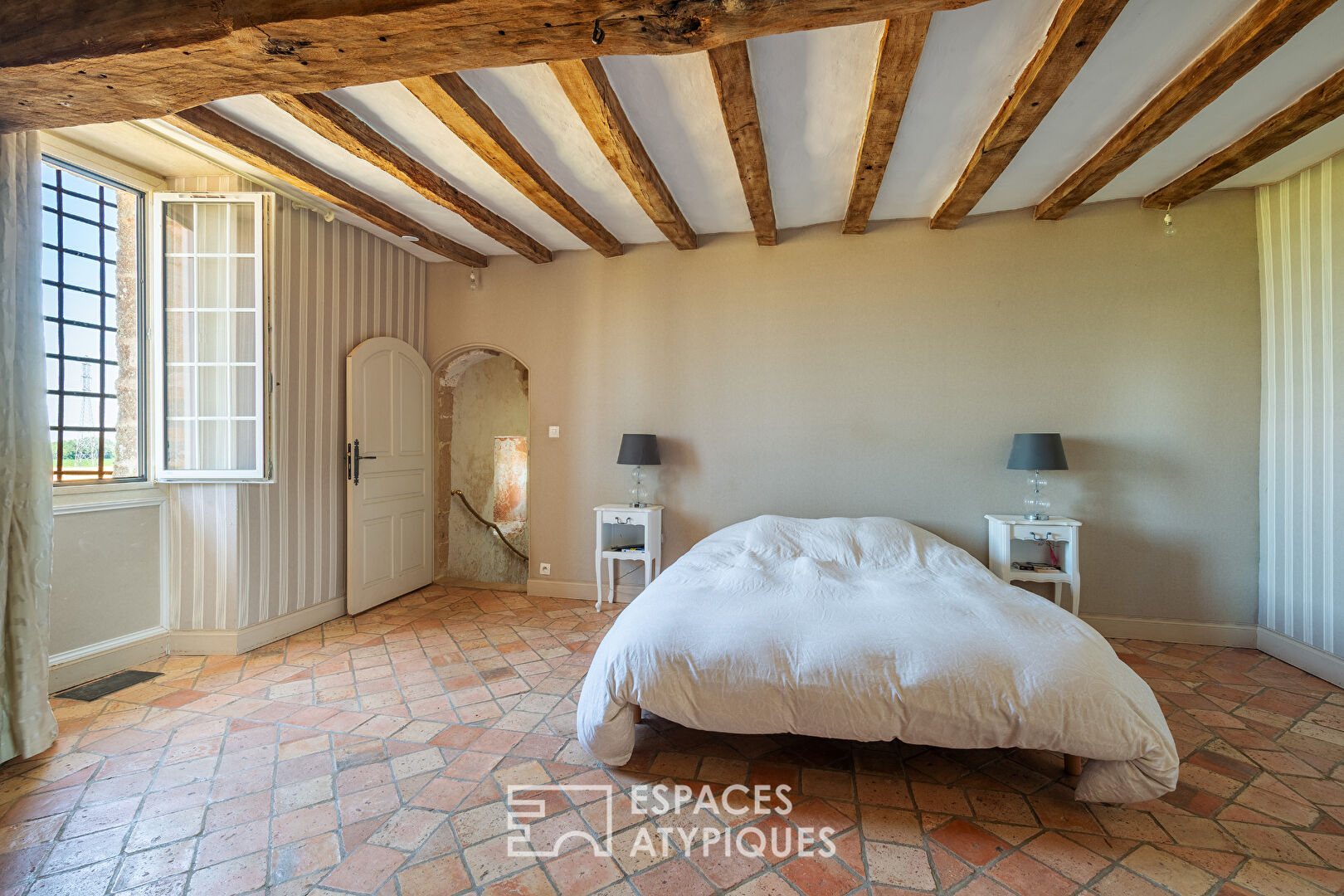 Cette demeure équestre du XVIème vous séduira par son charme et son authenticité, au milieu d'un vignoble non loin de Doué en Anjou. Un grand porche avec l'entrée du domaine ouvre ses portes sur une habitation principale et des dépendances. Cette propriété se compose en RDC d'une entrée donnant directement sur un vaste salon séjour avec poil à bois, un WC, une cuisine aménagée donnant sur une terrasse avec piscine chauffée 4 X 8 et sécurisée. Pour accéder à l'étage, un magnifique escalier en pierre avec dégagement desservant une chambre parentale de 30m² avec dressing et poutre apparentes, une salle d'eau, WC. Au 2ème étage, 2 chambres avec climatisation réversible, une salle d'eau, WC.