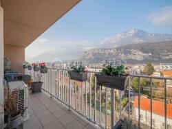 Dans cet environnement tranquille et privilégié en plein coeur de ville, avec une vue dégagée à 180 degrés, cet appartement se compose d'un bel espace d'entrée avec un cellier et placards, desservant le salon, la cuisine séparée toute équipée (four, plaques, hotte, lave vaisselle), donnant accès à une terrasse de 15 m2 environ en enfilade sur tout le côté ouest de l'appartement, orientée face au massif du Vercors, permettant de profiter pleinement de la vue et du soleil, sans aucun vis-à-vis.