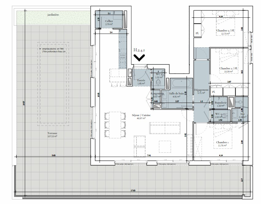 Un garage box en sous-sol est proposé en supplément (30 000 ) ainsi qu'une cave (8.000)