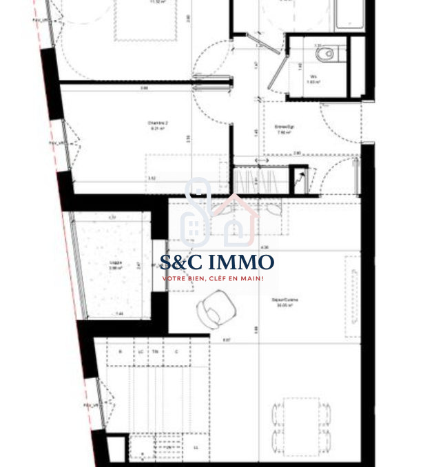 L'appartement comprend trois chambres, dont une suite avec salle d'eau, une seconde salle d'eau, un WC séparé et un dégagement fonctionnel. Chaque pièce a été pensée pour garantir confort, fonctionnalité et intimité.