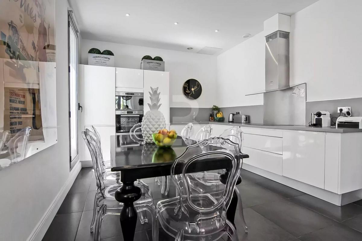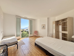 o Appartement traversant de 97,35 m2 habitable (loi Carrez) o Possibilité d'une 3e chambre dans les combles avec sa propre terrasse o 2 grandes chambres (20 m2 et 21 m2), toutes deux avec vue mer o Deux vastes terrasses dont une à l'étage, idéale pour installer une cuisine d'été ou un jacuzzi o Combles privatifs de 60 m2 au sol, aménageables en suite parentale avec salle de bain en récupérant environ 50cm de hauteur au niveau du sol o Séjour lumineux avec grande baie vitrée et hauteur sous plafond de 2,80 m o Cuisine entièrement équipée o Salle de bain avec baignoire, WC séparés o Climatisation gainable intégrée
