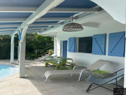 Située au Diamant, cette propriété rare offre un cadre de vie exceptionnel avec une vue imprenable sur le Rocher et la mer, véritable tableau vivant au quotidien. Édifiée sur deux niveaux, la maison principale de type T4 propose une organisation fonctionnelle : un séjour lumineux d'environ 30 m2 ouvert sur une grande terrasse conviviale, une cuisine aménagée et équipée récente, trois chambres confortables ainsi que deux salles d'eau. En rez-de-jardin, deux studios indépendants d'environ 30 m2 chacun complètent l'ensemble. Déjà exploités en location saisonnière, ils offrent un potentiel de revenus locatifs immédiat et attractif. À l'extérieur, vous profiterez d'un espace de détente privilégié avec piscine et jardin arboré, idéal pour savourer pleinement le climat et la douceur de vivre. Située dans un environnement résidentiel, cette propriété séduira autant pour une résidence principale que pour un projet d'investissement avec rentabilité. Un bien offrant une vue exceptionnelle et un potentiel intéressant -- à découvrir sans tarder.