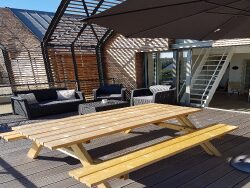 DINARD - Au 2° et dernier étage - Agréable APPARTEMENT 2 pièces, en parfait état, comprenant : Une belle pièce de vie exposée plein sud avec coin cuisine, dégagement avec placard, une chambre, un coin couchage en mezzanine, salle d'eau, wc indépendants. Magnifique terrasse bois de 23,40 m² idéalement exposée avec belle vue dégagée. Parking privatif. A quelques minutes des plages, et des commerces. A voir rapidement !