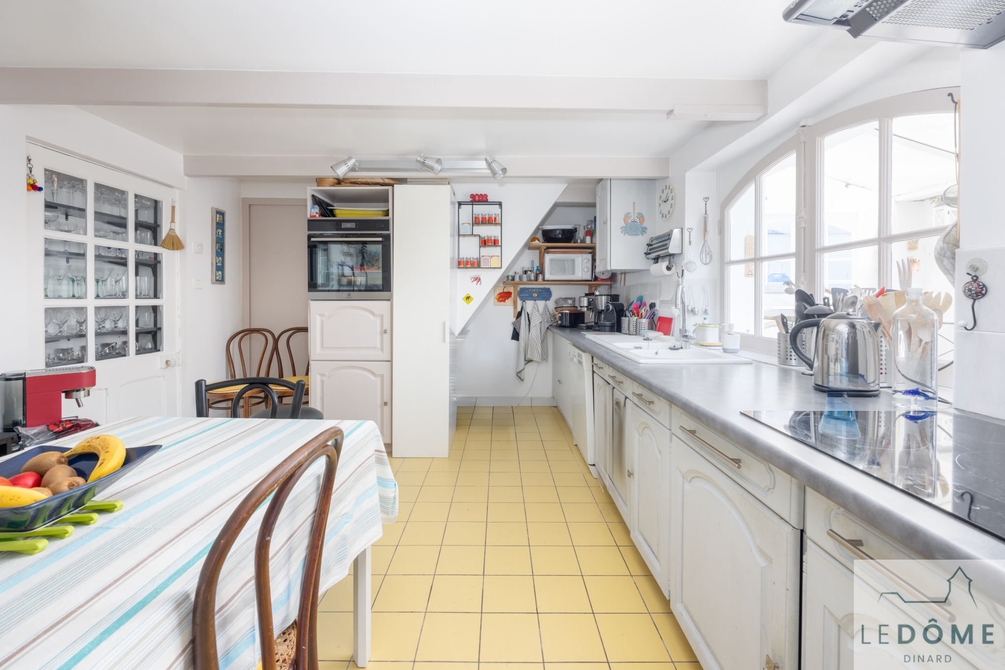 Propriété lumineuse en vente à Dinard la vicomté. L'Agence immobilière Le Dôme vous présente cette maison en pierres, située dans un quartier calme et arboré de Dinard, perle de la Côte d'Émeraude. Cette propriété de 163m2 séduit par ses volumes, son agencement fonctionnel et son beau jardin. Le sentier de randonnée qui longe la côte et les jolies criques sont accessibles en moins de cinq minutes à pieds. Situation idéale pour profiter du bord de mer sans les inconvénients de la foule estivale ! Au rez-de-chaussée: belle entrée, WC avec lave-mains, dressing, vaste salon-séjour lumineux ouvrant sur une terrasse bien exposée, grande cuisine aménagée et équipée. - Possibilité de créer une chambre au rez-de-chaussée selon vos besoins. À l'étage, le palier distribue quatre chambres, dont une suite parentale avec salle de bain privative et une seconde chambre avec salle d'eau privative. Un WC indépendant et un dressing complètent ce niveau. Pour votre confort, le sous-sol complet offre un garage pour deux voitures, une cave et une buanderie. Le tout sur un beau terrain clos de 936 m2, dans un environnement paisible et verdoyant. Informations sur les risques disponibles sur www.georisques.gouv.fr