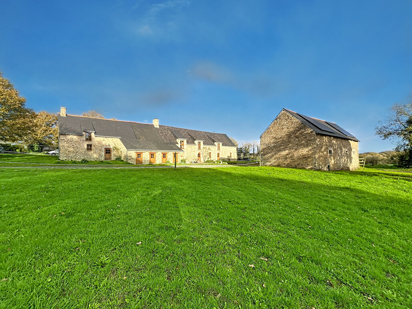 Située à Sarzeau, au coeur du parc naturel du Golfe du Morbihan, cette propriété d'exception s'étend sur près de 15 hectares de paysages préservés. À seulement 7 minutes du centre de Sarzeau, 15 minutes de Vannes et 10 minutes des plages, vous profitez d'un cadre rare, entre terre et mer. Une bâtisse au charme de l'histoire Bâtie au XVI? siècle, cette demeure en pierre associe caractère et volumes généreux. Elle comprend deux habitations distinctes (maison principale + gîte), pour une surface totale de 428?m² répartis en 11 pièces dont 7 chambres. Maison principale (300 m²) : Un vaste séjour cathédrale de 84?m², baigné de lumière, prolongé par une salle à manger Cuisine semi-indépendante aménagée / équipée Suite au rez-de-chaussée avec salle d'eau privative Espaces de service (atelier, buanderie, entrée de service) À l'étage : mezzanine « passerelle », trois chambres, salle de bains (baignoire & douche), terrasse Possibilité d'aménager un 5? espace nuit sous combles Maison d'amis (125 m² approx.) : Pièce de vie lumineuse avec cuisine ouverte Trois chambres (dont une au rez-de-chaussée) Deux salles d'eau Indépendance totale, idéale pour accueillir famille ou amis ou pour la location saisonnière. Un parc à vocation multiple Ce domaine en un seul tenant dévoile : une forêt trois étangs poissonneux de vastes prairies, parfaites pour chevaux, ânes, moutons des cheminements ombragés invitant à la flânerie Prestations & confort Rénovation récente menée avec exigence Chauffage par pompe à chaleur (partie principale) Exposition sud privilégiée Classe énergétique DPE : A et C GES : A Points forts & potentiel Belle dualité entre élégance historique et aménagements contemporains Flexibilité d'usage (lieu de vie, accueil, résidence secondaire, projet professionnel Un environnement préservé, intime, sans nuisance Une porte d'entrée vers le charme singulier du Golfe Contact & visite : Je vous invite à me contacter pour obtenir le dossier complet, plan, photos haute définition, ou organiser une visite. Ce lieu rare attend ses futurs propriétaires pour écrire le prochain chapitre de son histoire.