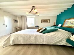 La longère propose aux heureux propriétaires un vaste séjour-salon de 50 M2 avec cheminée centrale, un salon Tv avec cheminée, une vaste cuisine toute équipée, avec un très beau piano professionnel, aménagée de son carré et ses banquettes. Côté nuit, un confortable bureau-bibliothèque, cinq grandes chambres dont une en rez de chaussée avec des baies vitrées offrant une vue sur la piscine et la prairie, trois salles de douche, un dressing, une grande salle de bain, trois WC.