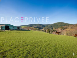 Vosges Gemaingoutte : Vend domaine équestre de 35 hectares clôturés, exploitation en activité, habitations rénovées et infrastructures complètes. Implanté au coeur d'un paysage vosgien ouvert, ce domaine équestre se déploie dans un environnement naturel structuré par les reliefs, les prairies étendues et les lisières boisées. Les terres, regroupées et entièrement clôturées, offrent une lecture claire du foncier et une exploitation rationnelle. Deux sources naturelles ainsi que des ruisseaux traversant les parcelles assurent l'alimentation en eau de l'ensemble du domaine, participant à son autonomie et à la cohérence de son organisation. L'activité actuelle repose sur l'accueil de soixante-quinze chevaux en pension retraite. Les parcs sont dimensionnés pour favoriser l'espace, la circulation et la liberté de mouvement. Tous bénéficient d'un accès direct à l'eau et d'abris ouverts. L'ensemble du fonctionnement privilégie une approche respectueuse du rythme des chevaux, avec des espaces lisibles, ouverts et faciles à gérer au quotidien. Les infrastructures équestres s'articulent autour de plusieurs bâtiments agricoles entretenus et fonctionnels. Trois grands hangars accueillent des stabulations libres directement connectées aux parcs, permettant une gestion fluide des flux. Des écuries, selleries, espaces de stockage et zones techniques complètent l'outil de travail. Les volumes sont généreux, les circulations larges, et l'organisation pensée pour une exploitation efficace. Une carrière vient renforcer l'autonomie du site, tandis que des chemins de balade sont accessibles à proximité immédiate. La partie habitation se compose d'une ferme rénovée développant environ 200 m². Les volumes intérieurs sont amples et organisés de manière fluide. Le séjour double accueille un espace salon et une cuisine équipée, avec un prolongement naturel vers une véranda puis une terrasse, ouvrant sur l'extérieur. L'espace nuit propose trois chambres ainsi qu'une salle de bains équipée d'une douche à l'italienne. A l'étage, une chambre supplémentaire dispose de sa propre salle de bains avec sauna, créant un espace indépendant au sein de la maison. Chaudière pellet et cheminée au bois. Un second logement indépendant d'environ 120 m² est intégré au domaine. Entièrement rénové, il est actuellement loué et génère un revenu complémentaire. Sa présence apporte une souplesse d'usage, que ce soit pour de la location, de l'accueil ou une organisation liée à l'exploitation. Le domaine est également structuré autour d'un vaste club house. Cet espace, aux volumes ouverts et à l'identité marquée, est pensé comme un lieu de vie et de rencontre. Il accueille plusieurs zones dédiées à l'accueil, aux échanges et aux activités artistiques ou collectives. Un kota grill complète cet ensemble et participe à la cohérence des espaces communs. Vingt hectares supplémentaires peuvent être loués ou acquis, permettant d'envisager une extension significative de l'exploitation. La création d'un troisième logement d'environ 130 m² est également possible, renforçant encore le potentiel du site. A la fois outil professionnel abouti, lieu de vie structuré et ensemble foncier cohérent, ce domaine équestre offre une opportunité rare pour un projet solide, inscrit dans la durée. Il se situe entre Saint-Dié et Ribeauvillé, à proximité immédiate de l'Alsace, et à environ une heure de Nancy avec un accès facilité par le TGV. Les informations sur les risques auxquels ce bien est exposé sont disponibles sur le site www.georisques.gouv.fr