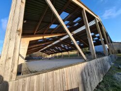 Au calme , dans la campagne du limousin sur 32 hectares d'un seul tenant, avec une maison d'habitation de 224 m² , 3 chalets, située à 20 minute de limoges (gare et aéroport ) cette propriété offre un cadre idyllique pour les activités d'élevage et agrotourisme. Une maison d'habitation, de 224 m² habitable sur deux niveaux avec une très belle pièce de vie centrale de plus de 90 m² divisée en 3 espaces par des poutres verticales un espace chambre ou bureau, un salon avec vue sur la prairie et une cuisine ouverte avec coin repas. A l'étage , une mezzanine distribue 3 chambres et 1 salle de bain ( baignoire et douche à l'italienne ). Une ambiance chaude, des volumes incroyables et une belle luminosité. Chauffage bois avec un poêle central France Turbo (14kw). Bonne isolation générale, double vitrage partout. UNE INFRASTRUCTURE EQUESTRE : 15 ha de prairies aménagées en équi-piste avec abris (le reste étant consacré à la production de foin) Un manège de 20x40m avec éclairage (construit en 2017 ; sable de fontainebleau) Une écurie avec 12 boxes (parois amovibles) et système de vidéo surveillance Un parcours de mountain trail Un rond de longe 2 selleries Hangar à fourrages (construit en 2017) GITES : 3 gîtes indépendants (chalet en rondin de bois et toiture végétale avec chacun sa terrasse) offrent une expérience unique et atypique. Chaque gîte propose sur 49 m² : une grande pièce de vie, 2 chambres et une salle d'eau. Un 4ème chalet, plus petit, est aménagé pour l'accueil, permettant de dissocier entièrement sa vie personnelle de l'activité professionnelle. LES + NON NEGLIGEABLES : Sources et plan d'eau 90 % prairie naturel et 10 % bois - produit son propre foin bio - equi pistesur le domaine Une grange (en bon état général, toiture refaite en 2016, mais non exploitée) offre près de 200 m² de potentiel supplémentaire pour accueillir de nouveaux projets Pas de travaux à prévoir Le calme absolu tout en étant à moins de 5 min d'une gare TER (Limoges à 20 min), à 8 min des commerces (banque, pharmacie, supérette, presse tabac, essence, boulangerie ) et à 15 min des producteurs locaux (fromages, viande, légumes ) Lac de Saint Pardoux à moins de 20 min : site touristique majeur au coeur d'un site naturel préservé, ce lac de 330 hectares est le lieu idéal pour la pratique des activités de pleine nature L'ensemble est un havre de paix (du vallon, des arbres, de l'eau .), situé à 20 min de Limoges (gares et aéroport), aucune nuisance, les chemins ombragés partent de la propriété pour des kms de randonnées dans une forêt domaniale, idéal pour concilier vie personnelle et projet professionnel. Information sur demande La propriété vous est présentée au prix de 885 000 (dont 5 % TTC à charge de l'acheteur). Il est tout à fait possible d'acheter du matériel supplémentaire en fonction de vos besoins.
