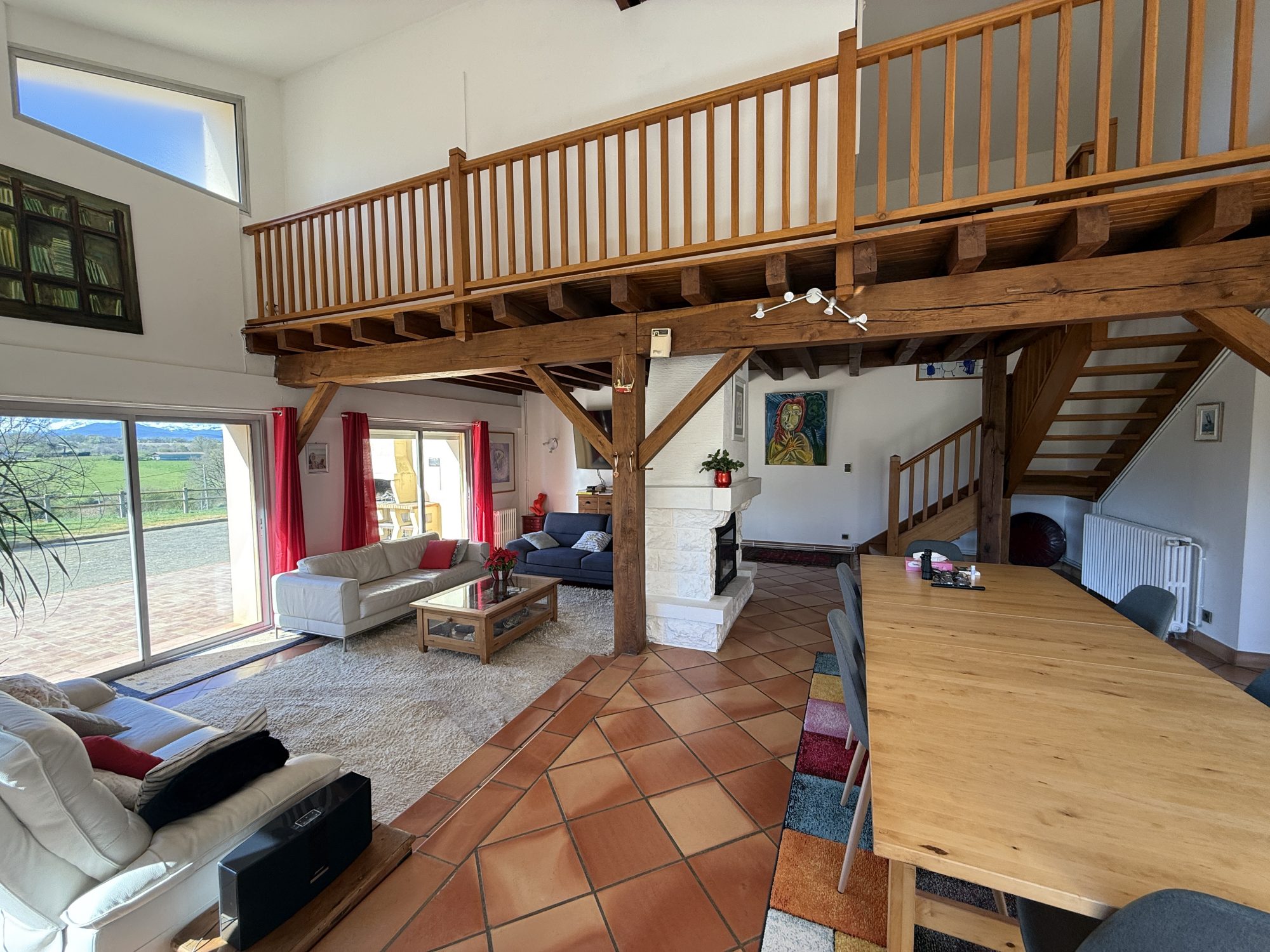 Le domaine comprend deux maisons complètement indépendantes. La première, en pierre, offre six chambres spacieuses, un immense salon avec cheminée et insert, ainsi qu'une cuisine indépendante. Côté technique, la maison est équipée d'un chauffage au bois et électrique, et des panneaux solaires sont installés sur le toit pour l'autoconsommation.