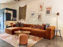 A seulement quelques minutes de Narbonne et des plages de Gruissan, au bord du mythique Canal de la Robine (affluent du Canal du Midi), ce splendide ancien domaine viticole en pierre a été entièrement réhabilité en un ensemble immobilier de caractère, alliant charme authentique et confort contemporain. Un véritable havre de paix, idéal pour une grande famille, un projet locatif ou un regroupement familial. Il se compose de trois logements indépendants : 1. Le Mas principal - environ 180 m² de charme et de lumière Cette superbe demeure rénovée avec soin conjugue avec élégance modernité et cachet de l?ancien. Au rez-de-chaussée, vous serez séduit par une immense pièce de vie de 110 m² baignée de lumière, avec vues imprenables sur le canal d?un côté, et sur le jardin avec piscine et espace lounge de l?autre. De grandes baies vitrées assurent une parfaite continuité entre intérieur et extérieur. La maison propose une cuisine américaine haut de gamme, un salon double exposition, une chaleureuse salle à manger avec cheminée à double foyer. L?espace nuit comprend : -Une suite parentale avec dressing et salle d?eau -Une deuxième suite avec salle d?eau Possibilité de créer une troisième suite en intégrant le T2 actuellement indépendant. Un garage complète ce bien. Les extérieurs, parfaitement aménagés en bord de canal, invitent à la détente avec une belle piscine entourée de terrasses en béton ciré, dans un esprit ?dedans-dehors? unique. 2. Logement T2 attenant - 30 m² environ Attenant au mas et pouvant être intégré ou totalement indépendant grâce à une porte privative, ce logement propose une pièce de vie avec cuisine ouverte, salon, une chambre séparée et une salle d?eau. Vue dominante sur le canal. 3. Penthouse d?exception - environ 195 m² + 3 terrasses (177 m²) À l?étage, ce spectaculaire appartement en duplex séduit par son volume, sa luminosité, son style et ses vues imprenables sur le canal. Pièce de vie de 90 m² avec salon, salle à manger, cuisine ouverte équipée. 4 grandes chambres 1 salle de bains avec WC, 1 salle d?eau, 1 WC séparé 3 terrasses : une centrale avec piscine (98,60 m²) et deux autres terrasses de 32 m² et 48 m² Les plafonds hauts avec poutres apparentes, les matériaux nobles et les espaces extérieurs rares en font un bien unique. Un lieu de vie exceptionnel Ce bien rare, longeant le Canal du Midi, offre de multiples possibilités : Résidence principale avec hébergement pour les invités Projet de location saisonnière à forte rentabilité (déjà en activité) Résidence familiale partagée Un cadre idyllique, entre vignes, eau et lumière, aux portes de la Méditerranée.