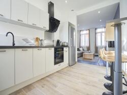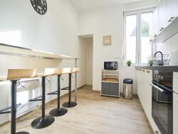 - D'une cuisine équipée avec mange debout et vaisselle