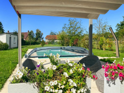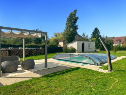Situé à 10 km de Courtenay avec toutes commodités (supermarchés, écoles, salle de sports, etc..) et à quelques km du centre-bourg de Douchy-Montcorbon offrant boucherie, épicerie générale, pharmacie, coiffeur et boulangerie, ce joli pavillon de construction traditionnelle se compose d'une entrée par véranda donnant sur un séjour-salon lumineux avec cuisine américaine aménagée et équipée, de trois chambres dont deux équipées de placards, d'un dégagement, d'une salle d'eau et de WC indépendants. Le chauffage est assuré par radiateurs électriques complétés d'une cheminée insert avec un répartiteur. Côté extérieur, vous trouverez trois abris de jardin, une piscine chauffée par pompe à chaleur de 8 m x 4 m avec une profondeur de 1,10 m à 1,50 m, un liner changé en 2024, douche solaire et abris piscine motorisé, le tout dans un agréable jardin arboré avec arbres fruitiers et entièrement clôturé offrant un cadre campagnard au calme. Parmi les équipements complémentaires, on note la fibre installée, une borne pour voiture électrique une terrasse en bois composite ainsi qu'un store banne motorisé. Pour d'avantage de renseignements contactez-moi, Nicolas GERMANN, agence EXPERTIMO, 6 rue de Villeneuve à Courtenay au 07.87.16.61.58