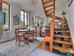 L'agence BIAS Immobilier de HONFLEUR vous propose: très beau duplex de 82,51m² traversant et très lumineux situé au premier étage il se compose: un salon avec cheminée, un séjour avec cheminée, une cuisine aménagée et équipée, un dégagement avec grand placard, un WC, A l'étage: un dégagement desservant 2 chambres avec placards et cheminée, une salle de bains (baignoire et douche) et double vasque, un WC séparé Matériaux de qualité (parquet, tommettes, marbre), belle hauteur de plafond Cour commune, local commun