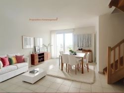 A Noisy-le-Grand, quartier Varenne-Centre-Rive Charmante, je vous présence ce charmant appartement duplex de 3 pièces, situé au 2e et 3e étage (et dernier) d'une résidence moderne, bien entretenue et sécurisée de 2007. En excellent état, il vous séduira par ses volumes généreux et son agencement particulièrement fonctionnel. D'une superficie de 71 m2 (67 m2 Carrez), il est composé au premier niveau d'une large entrée s'ouvrant sur un superbe et très lumineux salon / salle-à-manger (27 m2) se prolongeant par un balcon (5 m2), d'une cuisine séparée, d'un wc et d'un espace buanderie-lingerie. Au deuxième niveau, un vaste dégagement donne accès à deux chambres (10 et 9 m2) particulièrement claires, grâce aux fenêtres de toit et à une salle de bains avec wc. Une cave d'environ 6 m2 et un double emplacement de parking en sous-sol viennent compléter ce bien. La résidence est proche des commodités, des transports et des écoles. Ce bien rare sur le secteur saura répondre à toutes vos attentes en matière de confort et de praticité. Une visite est obligatoire pour venir se rendre compte de ses beaux volumes. (*) Les photos meublées avec IA sont ici afin de mieux pouvoir vous projeter sur les espaces généreux de ce foyer. - Annonce rédigée et publiée par un Agent Mandataire -