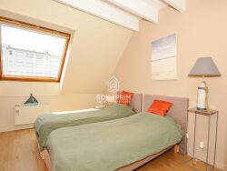 Emplacement rare, a proximité immédiate du marché couvert et de la plage. Situé à proximité immédiate de la plage et du marché du Touquet, ce duplex élégant offre trois chambres, deux salles de bains et de beaux volumes baignés de lumière. Une cave, un local vélos communs et un grand box dans une résidence voisine compléteront votre confort !! Idéal pour pied-à-terre raffiné. Au 4ème et 5 ème étage étage avec ascenseur d'une résidence recherchée et très bien entretenue Appartement de Type T4 d'une surface de 80.24m² Au premier niveau : Entrée avec placards Salon-séjour lumineux ouvrant sur un large balcon - terrasse Coin bureau Une cuisine séparée équipée Une salle de douche avec WC Au premier niveau : Un palier Trois chambres Une salle de bains Un WC Descriptif technique : Chauffage électrique Double vitrage avec volets éléctriques Un box fermé dans une résidence voisine en option : 50.000 euros Une cave en sous sol Local vélos dans la résidence Soumis au statut de la Copropriété Charges de copropriété : 773 /trimestre (compris chauffage de base et eau chaude). Taxe foncière 2024: 2217
