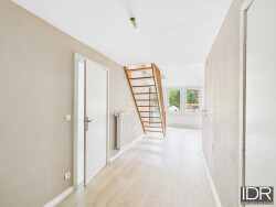 Le rez-de-chaussée s'ouvre sur un dégagement desservant un salon-séjour ouvert sur une cuisine, une chambre, une salle de bain et un wc séparé. Le salon permet un accès direct sur la terrasse. L'étage loge une chambre et un bureau (pouvant faire office de chambre pour un petit enfant ou d'une chambre d'appoint).