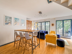 EMPLACEMENT RECHERCHÉ QUARTIER JEAN JAURÈS / REINE Idéalement situé à Boulogne-Billancourt, rue de Billancourt, à seulement 6 minutes à pied du Métro de Paris Ligne 10 (station Boulogne Jean Jaurès (métro de Paris) et à proximité immédiate des commerces ainsi que du centre commercial Les Passages de Boulogne, le CABINET BR-IMMOBILIER vous propose ce superbe duplex familial de 108 m2, aux allures de maison. Situé au sein d'une copropriété récente de standing (2007), ce bien rare bénéficie d'un jardin privatif arboré de 35 m2 exposé plein sud, offrant calme et luminosité, qui offre une surface pondérée totale de 123.5m2. Réparti sur deux niveaux, il se compose au rez-de-chaussée d'une entrée, d'un WC indépendant, d'une cuisine indépendante équipée, ainsi que d'un vaste séjour / salle à manger de 32 m2 ouvrant de plain-pied sur le jardin. Un bureau, pouvant faire office de chambre supplémentaire, complète ce niveau. À l'étage, vous trouverez quatre chambres, une salle de bains avec douche et WC, ainsi qu'une salle d'eau. Appartement lumineux et au calme, situé à l'arrière du bâtiment principal, offrant une configuration idéale pour une famille. Une cave ainsi que deux places de parking en sous-sol complètent ce bien. DPE : C GES : A Chauffage électrique individuel Bien rare sur le secteur.