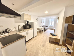 Découvrez ce magnifique duplex de 35 m², niché au coeur d'un immeuble de standing, récemment rénové en 2024. Situé au deuxième étage, cet appartement offre une vue imprenable sur la ville, avec une exposition Est-Ouest qui garantit une luminosité naturelle tout au long de la journée. Imaginez-vous dans cet espace de vie soigneusement conçu, où chaque détail a été pensé pour votre confort. L'intérieur, en excellent état, se compose de deux pièces principales, dont une chambre spacieuse et une salle d'eau moderne avec WC indépendant. La cuisine, aménagée et équipée, est un véritable coin cuisine où vous pourrez préparer vos repas avec plaisir. La véritable pépite de cet appartement est sans doute sa terrasse de 10 m², un véritable havre de paix où vous pourrez profiter des beaux jours en toute tranquillité. Les ouvertures en bois/PVC apportent une touche de charme authentique tout en assurant une isolation intérieure optimale. Ce duplex est bien plus qu'un simple appartement; c'est un véritable nid douillet où vous pourrez vous sentir chez vous dès le premier instant. Les parties communes, en bon état, ajoutent une touche de sérénité à votre quotidien. De plus, un grenier est à votre disposition pour ranger vos affaires. Ne manquez pas cette opportunité unique de vivre dans un appartement au charme intemporel, alliant modernité et confort. Contactez-nous dès aujourd'hui pour organiser une visite et découvrir par vous-même tout le potentiel de ce bien exceptionnel. À proximité, vous trouverez plusieurs commodités pratiques, dont plusieurs restaurants et alimentations générales à 5 min à pied, plusieurs médecins généralistes à 5 min à pied, un parc et jardin à 5 min à pied, un bus et un tramway à 5 min à pied, plusieurs crèches, maternelles et élémentaires à 10 min à pied, un collège à 5 min en voiture, un hôpital à 10 min en voiture.