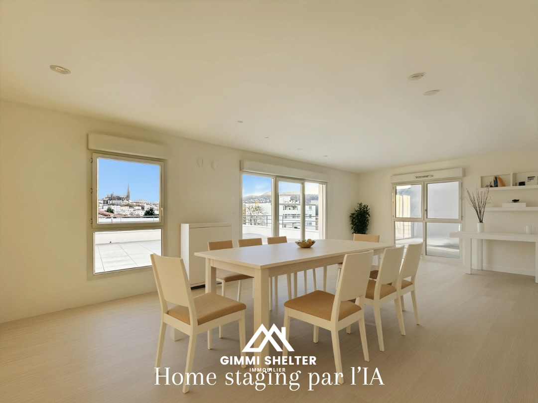 JAUDE Immobilier vous propose en EXCLUSIVITÉ ce magnifique DUPLEX F5 de 200 m2 (137 m2 Carrez), entièrement RÉNOVÉ en 2023-2024. Situé sur les hauteurs de Royat, au 1er et DERNIER ÉTAGE d'une petite résidence de STANDING (4 lots) réhabilitée en 2021, ce bien rare allie confort, élégance et modernité. Premier niveau : - Double séjour spacieux et lumineux de 60 m2 avec cheminée en pierre, pour une ambiance chaleureuse. - Cuisine HAUT DE GAMME de 23 m2 entièrement équipée, idéale pour recevoir. - Terrasse de 61 m2 sans vis-à-vis offrant une VUE PANORAMIQUE sur Royat, Chamalières et les monts environnants. - Une chambre avec salle d'eau privative et grand DRESSING. - WC séparé. - Vestiaire sur palier. À l'étage : - Suite parentale de 23 m2 au sol avec un DRESSING de 20 m2 au sol. - Chambre/espace TV/Bibliothèque de 21 m2 (37 m2 au sol), parfaite pour vos moments de détente. - Salle de bain avec baignoire et douche à l'italienne. - WC séparé. Prestations haut de gamme : - Chauffage individuel par pompe à chaleur AIR/EAU et AIR/AIR. - Double vitrage aluminium. - Chauffe-eau thermodynamique. - Cuisine, salle de bain et salles d'eau HAUT DE GAMME. - Parquets en chêne massif. Annexes: - Espace atelier/buanderie de 25 m2 pour le stockage en sous-sol. - Place de parking dans garage fermé avec porte motorisée en sous-sol. - Seconde terrasse à l'arrière de la maison pour profiter des beaux jours. - Jardin privatif (en pente) de 308 m2. Ce bien rare n'attend plus que vous ! Informations copropriété : - Nombre de lots : 4. - Charges annuelles : environ 1 200 EUR (100 EUR/mois) incluant eau, charges courantes et entretien des espaces verts. SYNDIC BÉNÉVOLE. - Aucuns travaux à prévoir. - Pas de procédure en cours. Classe énergétique : B (nouvelle réglementation). - Coûts estimés entre 1 010 EUR et 1 410 EUR par an pour une utilisation standard (chauffage, eau chaude, climatisation, éclairage, auxiliaires). Le prix indiqué comprend les honoraires d'agence à la charge du vendeur. Pour plus d'informations sur les risques auxquels ce bien est exposé : www.georisques.gouv.fr (décret no2022-1289 du 1er octobre 2022).