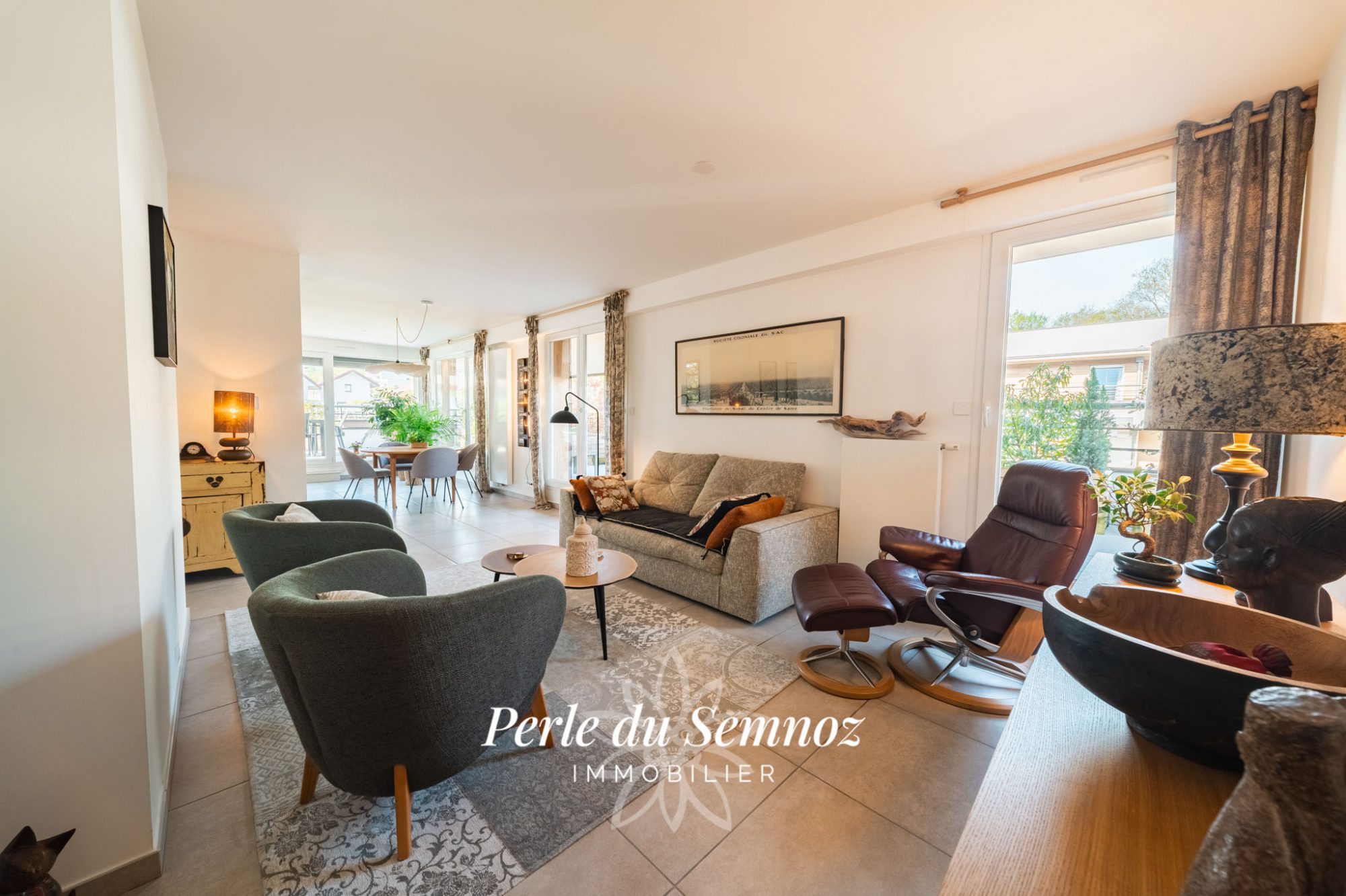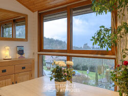 Au coeur d'un cadre résidentiel confidentiel à Bluffy, ce duplex de caractère développe 108 m² Carrez (124 m² au sol) et occupe le premier et dernier étage d'une copropriété intimiste de seulement deux appartements. Un bien rare, conjuguant charme, volumes et nature. Dès l'entrée, la pièce de vie d'environ 60 m² séduit par sa luminosité et ses perspectives. Le salon, structuré autour d'une cheminée, dialogue harmonieusement avec la cuisine équipée ouverte et l'espace salle à manger. Les larges fenêtres fixes encadrent une vue inspirante sur le lac et le château de Menthon-Saint-Bernard, offrant un tableau vivant au fil des saisons. Au même niveau, une suite parentale avec salle de bains privative assure un confort de plain-pied, idéal pour une vie fluide et agréable. L'étage accueille trois chambres, une salle d'eau et de nombreux rangements intégrés, pensés pour répondre aux besoins d'une vie familiale. A l'extérieur, la terrasse ombragée et le jardin paysagé, bordé d'un ruisseau créent une atmosphère bucolique, propice à la détente. Un mazot indépendant d'environ 10 m² complète l'ensemble, parfait en espace de rangement. Une cave et deux places de stationnement extérieures privatives viennent parfaire les prestations. A seulement dix minutes à vélo du centre de Menthon-Saint-Bernard, des commerces et des écoles et du lac, ce bien offre un équilibre rare entre calme absolu et proximité des commodités. CLASSE ÉNERGIE : C / CLASSE CLIMAT : B Montant moyen estimé des dépenses annuelles d'énergie pour un usage standard, établi à partir des prix de l'énergie des années 2021,2022 et 2023 : entre 1610 Euros et 2230 Euros. Les informations sur les risques auxquels ce bien est exposé sont disponibles sur le site Géorisques pour les zones concernées : www.georisques.gouv.fr. Contact : Dominique 06 61 75 80 10 Copropriété de 2 lots - dont 2 lots habitation.(). Dominique MOINE (EI) Agent Commercial - Numéro RSAC : 512 486 259 - ANNECY.