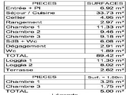 - Sur le premier niveau : séjour 33,73m2+entrée 6,92m2, placards, wc séparés, cellier 4,95m2, expo sud et ouest, terrasse 11,3m2