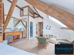 Au sein d'un hôtel particulier de caractère, coup de coeur assuré pour ce duplex en deuxième et dernier étage d'une petite copropriété parfaitement valorisée et entretenue. Il offre pour sa grande pièce de vie de très beaux volumes et hauteurs sous plafond avec parquet massif, cheminée, espace repas et cuisine équipée. A l'étage, vous profitez d'une grande chambre avec dressing aménagé pouvant être divisée, un hammam, salle de bain avec baignoire ainsi qu'une petite chambre mansardée ou bureau.