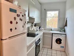 Il comprend une entrée avec rangements, une chambre avec placards, une salle de bain, wc indépendants, une cuisine séparée, une pièce de vie ouvrant sur un balcon, un joli escalier donnant accès à la mezzanine aménagée en bureau ou 2ème petite chambre sous les toits avec velux. Parking fermé / box en sous-sol, cave, local 2 roues à disposition, stationnement extérieur dans la résidence.