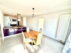 ECHENEVEX 01170, au coeur du ville, dans résidence récente, au DERNIER ETAGE avec joli balcon face au Mont Blanc, très agréable appartement type T3 (2 chambres) traversant de 62m2 comprenant : un hall d'entrée avec un placard, une cuisine entièrement équipée ouverte, salon séjour salle à manger avec accès balcon exposé au sud, deux chambres dont une avec un placard, un wc séparé avec un lave-main, une salle de bain avec meuble vasque et baignoire balnéo. En annexe : une place de parking privative extérieure, un garage fermé en sous-sol. Appartement en parfait état, au calme, disponible immédiatement. Les informations sur les risques auxquels ce bien est exposé sont disponibles sur le site Géorisques http://www.georisques.gouv.fr Matesa immobilier, agence immobilière indépendante Pays de Gex, location appartement Echenevex 01170
