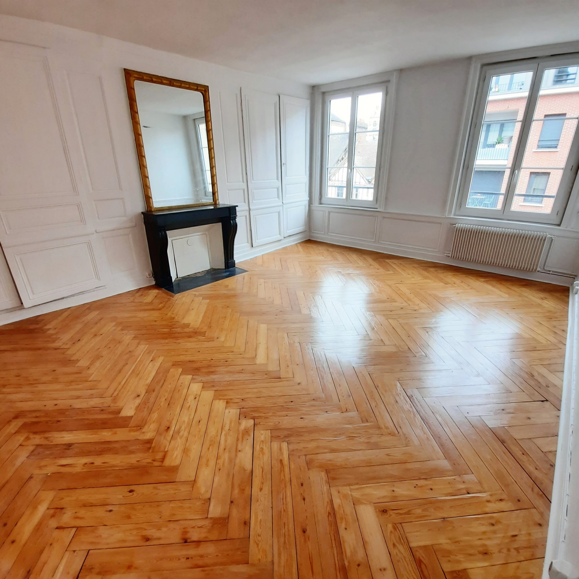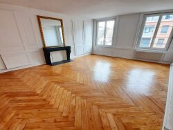 ELBEUF, proche de la mairie, apt F3 de 65 m² situé au 1er étage d'une résidence : entrée, séjour avec cheminée décorative, cuisine aménagée et équipée d'une hotte aspirante et plaque à induction, dégagement desservant deux chambres, salle de douche, wc. chauffage individuel électrique par caloporteurs récents. boitier fibre optique installé Electricité et chauffage individuelles, eau froide dans les charges.