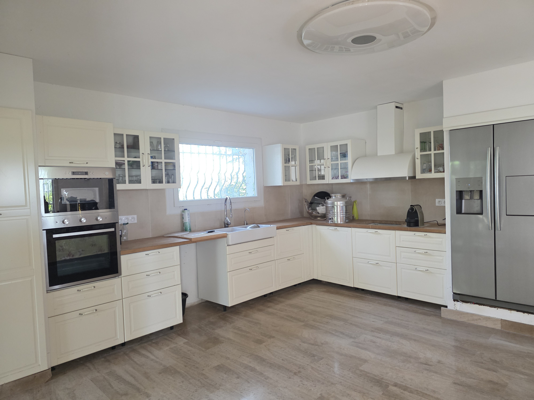 Un garage de 80 m² complète ce bien rare, offrant un vaste espace de stationnement ou de rangement.