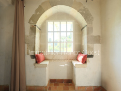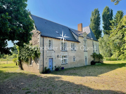 Derrière un portail discret, une cour gravillonnée dévoile la noble silhouette du manoir, flanqué d'un élégant pavillon et de dépendances aux multiples usages. Construit en moellons enduits à la chaux et en pierre de tuffeau, le logis principal s'élève sur trois niveaux, avec lucarnes, oculus et détails sculptés typiques de l'architecture locale. Les façades, habillées de grimpantes, dégagent une atmosphère chaleureuse et intemporelle. A noter que d'importants travaux de restauration ont été réalisés offrant à ce jour un haut niveau de confort (toiture, huisseries bois doubles vitrages, chaudière à pellets, assainissement...)