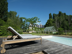 Le parc de 1,3 ha, entièrement clos, se compose de pelouses arborées, d'une piscine avec pool house, d'un bosquet, d'une prairie, de 2 mares et de plusieurs dépendances dont un atelier, une chaufferie avec sa chaudière à pellets, un garage et un chalet/chambre d'appoint indépendant avec eau et éléctricité.