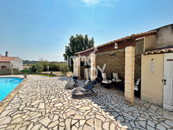Dans le charmant village d'Ouveillan à 20 mn de Narbonne et à proximité du Canal du Midi, connu pour son patrimoine roman et son atmosphère paisible, cette maison de maître du XIXe siècle vous séduira par son cachet, son confort moderne et son potentiel rare. Caractéristiques principales : Surface habitable : environ 201 m2 Jardin paysager avec vue dégagée Espace piscine avec cuisine et salon d'été Remise attenante en pierres et poutres de 370 m2 sur 2 niveaux Toiture rénovée, maison en parfait état Intérieur au charme authentique Un large couloir central typique des maisons de maître distribue les pièces avec élégance, sublimé par un escalier ancien. Rez-de-chaussée : Cuisine aménagée avec goût et qualité (18 m2) Salon lumineux exposé plein sud (28 m2) Salle à manger ouvrable sur la cuisine (16 m2) Salle d'eau + WC indépendant Possibilité d'aménagement de chambre Étage 1 : Suite parentale avec chambre spacieuse (16 m2), salle de bains avec toilettes (10 m2) et buanderie/dressing (9 m2) Deux chambres spacieuses (16 m2 et 17 m2) Dernier étage : Combles aménageables d'environ 90 m2 Extérieur enchanteur Le jardin offre une vue splendide sur la campagne environnante, et l'espace piscine avec cuisine et salon d'été invite à la détente et aux réceptions. Remise attenante : un potentiel rare Une ancienne remise agricole en pierres apparentes et poutres, d'environ 370 m2 sur deux niveaux, avec son propre extérieur, permet : * La création d'une habitation indépendante * Une division du bien pour revente ou location * Un projet artistique, professionnel ou touristique Prestations de qualité Chauffage central au gaz Panneaux photovoltaïques avec rendement annuel d'environ 5 000 EUR Menuiseries PVC double vitrage avec moustiquaires Volets battants PVC imitation bois Sol en tomettes anciennes Cheminées décoratives en marbre Toiture rénovée