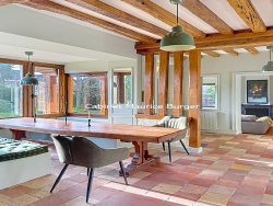 Nichée au coeur de Pacy-sur-Eure, à quelques pas seulement des commerces et de l'art de vivre du centre-ville, cette longère d'exception entièrement rénovée incarne l'équilibre parfait entre authenticité, confort contemporain et volumes généreux. Édifiée sur un terrain clos et paysager de 1 800 m2, la propriété offre un cadre de vie rare, à la fois intime et privilégié, à 10 minutes de l'A13, 50 minutes de l'ouest parisien et à une heure des côtes normandes. Dès l'entrée, les espaces de réception se déploient avec élégance : une salle à manger conviviale, un séjour lumineux, un salon chaleureux, ainsi qu'une cuisine dinatoire parfaitement équipée. Une buanderie, une salle de douche et une cave complètent ce niveau. Dans le prolongement des pièces de vie, une superbe pièce de réception s'ouvre sur une piscine intérieure, véritable coeur de la maison, pensée comme un espace de détente et de convivialité en toute saison. À l'étage, l'espace nuit propose une pièce palière, un vaste dortoir avec salle de douche, quatre chambres dont une en enfilade, ainsi qu'une salle de bains et une salle de douche supplémentaires, offrant confort et intimité à chacun. Une dépendance entièrement aménagée vient parfaire l'ensemble. Elle accueille un séjour avec salle à manger, une kitchenette, un dortoir, deux chambres et une salle de douche, idéale pour recevoir famille et amis ou envisager une activité d'accueil. Au total, la propriété propose : six chambres, deux dortoirs, quatre salles de douche et une salle de bains, le tout dans un état irréprochable, sans aucun travaux à prévoir. Un bien rare et confidentiel, où le charme de l'ancien rencontre des prestations de qualité, offrant une qualité de vie exceptionnelle au coeur de la vallée de l'Eure.