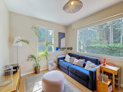 L'entrée, spacieuse avec son plafond cathédrale, laisse entrevoir, à travers deux portes vitrées à galandage, une grande pièce de vie lumineuse, ouverte sur un vaste balcon offrant une vue imprenable sur les pins et le jardin. La cuisine, spacieuse et ouverte, dispose d'un coin repas et petit-déjeuner. Une chambre parentale complète ce niveau, équipée d'une douche à l'italienne et de placards intégrés, offrant un confort de plain-pied idéal.