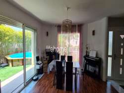 EXCLUSIVITE !!! ELNE : A seulement 10 minutes de Perpignan et 5 minutes des plages de Saint-Cyprien, L'Agence LAVILLE IMMO vous propose cette agréable et jolie villa 3 faces en R+1, idéalement située dans un environnement paisible et bénéficiant d'une exposition plein sud. Au rez de chaussée, découvrez une pièce de vie lumineuse, grâce à ses grandes baies vitrées ouvrant sur un jardin intime sans vis-à-vis. Le salon/séjour est équipé d'une climatisation réversible, garantissant confort toute l'année. La cuisine, fonctionnelle et entièrement équipée, complète l'espace de vie.Côté nuit, vous trouverez, une chambre spacieuse en rez-de-chaussée équipée de la climatisation gainable. Une salle d'eau avec fenêtre et toilette. A l'étage, idéal pour le coin enfants, 3 chambres avec placards, climatisation gainable, une salle de bains équipée d'un velux, d'un sèche-serviette et d'un toilette. L'extérieur se compose d'un agréable jardin sans vis-à-vis, deux cabanons de rangement, un forage, une terrasse pour vos moments de détente et des panneaux solaires pour un meilleur confort énergétique. Un bien complet, lumineux et idéalement situé, parfait pour une famille recherchant tranquillité et prestations modernes.Proche des écoles maternelles, primaires et collège. Honoraires à la charge du vendeur. Informations sur les risques disponibles sur : www.georisques.gouv.fr. DPE en cours. Ne tardez pas à nous contacter pour une visite sur site ! Coup de coeur assuré !!!
