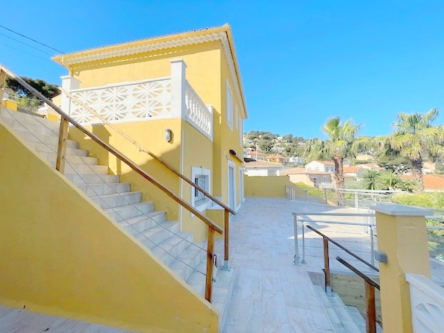 Édifiée sur un terrain plat, clos et arboré de 885 m2, cette maison avec piscine à Ollioules, entièrement rénovée en 2019, est en parfait état et sans travaux à prévoir.