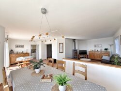 Cet espace convivial s'ouvre sur une belle terrasse idéale pour profiter des beaux jours, tandis qu'une seconde terrasse exposée plein ouest, agrémentée d'une pergola, invite à savourer les soirées en extérieur.