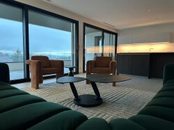 ANNECY LE VIEUX - Emplacement unique avec superbe vue lac dans domaine privé luxueux - Exceptionnel T5 neuf contemporain de 164 m² grandes baies vitrées avec BSO - clim réversible - 4 chambres - 3 SDB - 4 wc - terrasse de 36 m² Sud - 4 garages - cave - loyer HC : 4500 - Provisions/charges 250 soumises à régularisation annuelle - Dépôt de garantie 4 500 - Honoraires TTC charge locataire 1640 (dont 492.30 d'état des lieux) - Classe énergie A - Libre - Visite accompagnée.