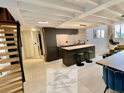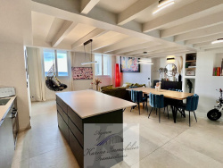 A Sainte-Maxime, dans résidence bourgeoise en face du port, appartement de type 3 pièces LOFT de 73 m2 au 5ème et dernier étage avec ascenseur composé : d'une entrée, d'un grand salon/séjour de 50 m2, cuisine américaine, un coin buanderie et un wc séparé. A l'étage nous retrouvons 2 chambres de 13 et 9 m2 avec verrieres, 1 salle de douche avec wc. Très belle hauteur sous plafond, rénové avec gout et de belles prestations ! Vue sur la mer
