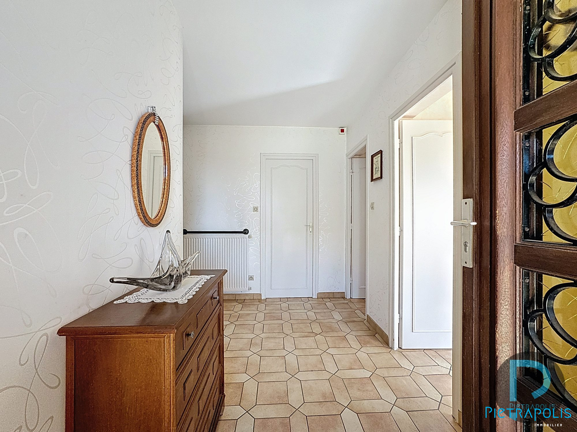 Au rez-de-chaussée, un hall d'accueil dessert un bureau lumineux et une salle d'attente:, un atoût rare pour toute activité libérale, artisanale ou de services. Ces pièces peuvent naturellement retrouver un usage domestiqueselon vos besoins.