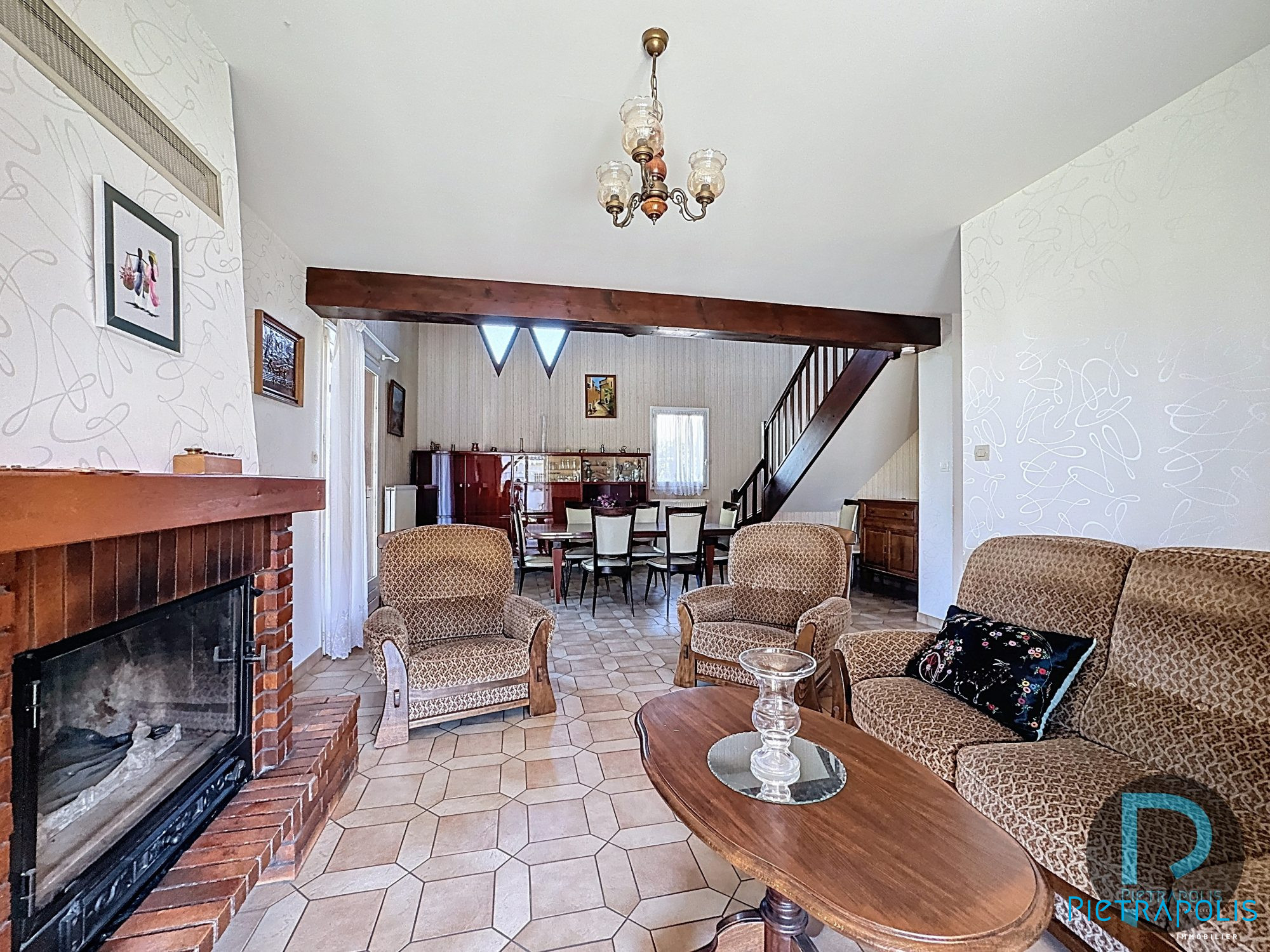 Les poutres, les murs en pièrre et les menuiseries en bois confèrent à la maison une atmosphère authentique et rassurante.