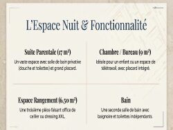 APPARTEMENT PRINCIPAL T4 74 m² (Rénové) * Espace de Vie Lumineux (33 m²) : Salon-salle à manger convivial, cuisine américaine équipée, clim. * Suite Parentale (17 m²) : Douche, WC séparés, grand placard. * Chambre / Bureau (9 m²) : Avec placard. * Cellier (6,5 m²), Salle de bain + WC indépendants.