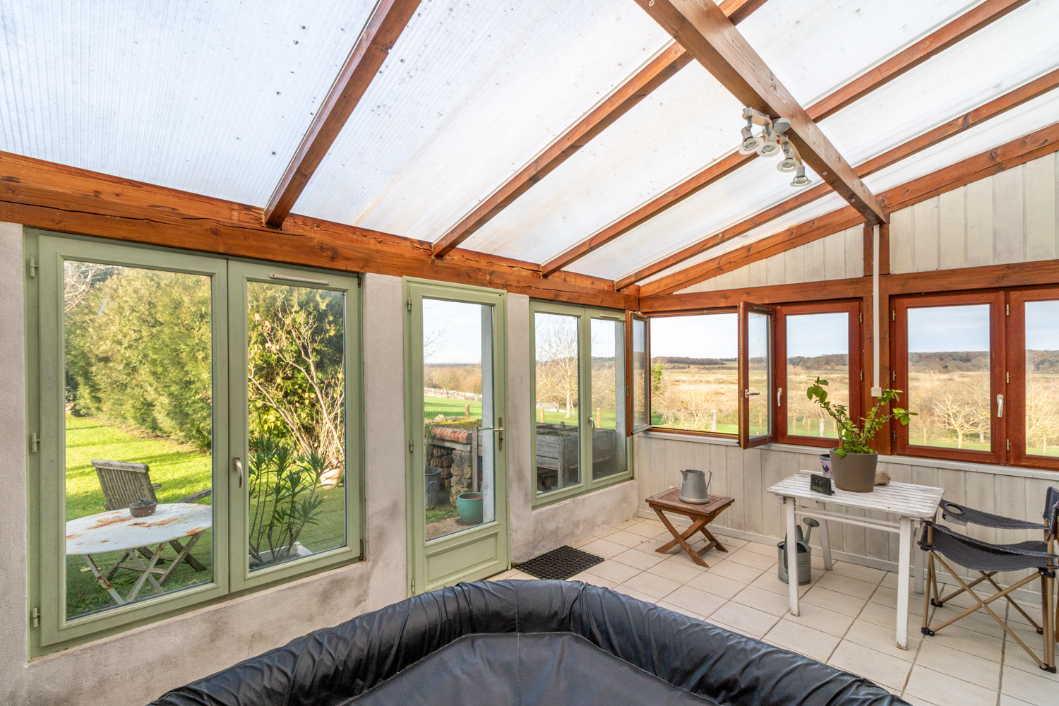 Portefeuille immobilier comprenant une maison principale, une maison mitoyenne et une chatterie. Six dépendances, dont une de 170 m², deux parkings couverts, un champ et un terrain descendant jusqu'à un ruisseau complètent ce complexe. Les possibilités équines, La maison principale se compose d'un hall d'entrée, d'un salon spacieux équipé d'un poêle à bois récent et d'une cuisine/salle à manger spacieuse et élégante. Un charmant escalier en colimaçon mène au premier étage, où se trouvent une salle d'eau récemment rénovée, une grande chambre et deux autres chambres. La maison annexe s'ouvre sur un petit hall d'entrée avec un espace de rangement à l'arrière. À droite se trouvent un espace cuisine/salle à manger/salon, avec une salle d'eau élégante à l'arrière. Le premier étage pourrait accueillir deux chambres supplémentaires et une salle de bains, avec un permis de construire, si vous le souhaitez. La chatterie pourrait facilement être transformée en une troisième maison ou en gîte. Une jolie entrée au sol en pierre mène à un coin cuisine et à des toilettes, qui donnent ensuite accès à un espace de chatterie de 65 m², avec des enclos extérieurs. 5 granges, toutes attenantes, se trouvent en face des maisons. La plus grande de ces granges mesure environ 170 m². Il y a également des granges entre les maisons et la chatterie, dont l'une abrite un grand système de chauffage à granulés qui peut être remis en service. Les deux maisons disposent d'un joli jardin clos à l'avant, qui descend jusqu'à la limite de la propriété, où coule un ruisseau. Les deux maisons ont un jardin arrière séparé, avec un four à pain à l'arrière de la deuxième maison. Le champ peut être utilisé pour l'élevage de chevaux, avec une grange pouvant servir d'écurie. La propriété est située entre les villes de Matha et Saint-Jean-d'Angély, toutes deux accessibles en moins de 15 minutes en voiture, à proximité de tous les commerces, de l'autoroute et de la gare.