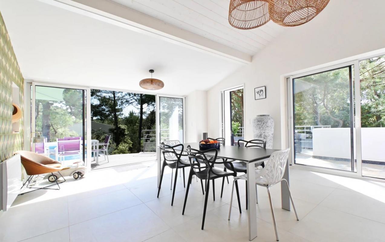 - LG IMMO - Cabinet GARÉCHÉ vous présente un ensemble immobilier de 2 villas, pour une surface totale d'environ 116 m2, situé à Saint-Georges-de-Didonne, à quelques minutes de Royan et à deux pas de la plage de la Grande Conche. Ces villas vous offrent de très belles prestations, conçues pour vous offrir un cadre de vie très agréable. La maison principale d'environ 77 m2, propose une belle pièce de vie lumineuse avec une admirable hauteur sous plafond, s'ouvrant sur une cuisine américaine. Un couloir dessert une buanderie, une salle d'eau, des toilettes séparées, une première chambre et une seconde chambre avec sa propre salle d'eau et son WC. Le séjour et les deux chambres s'ouvrent sur une terrasse en bois vue mer, d'environ 30 m2, exposée sud-ouest. Une piscine de 6,80 x 4 m et un magnifique jardin paysager de 731 m2 relient les deux biens, offrant un bel espace extérieur pour profiter de l'été. La maison d'amis, avec une entrée totalement indépendante, dispose d'un espace intérieur d'environ 39 m2, comprenant un salon avec coin cuisine, une chambre, une salle d'eau, des toilettes séparées et une terrasse en bois, à l'abri des regards, d'environ 24 m2. Cette dépendance est idéale pour accueillir famille, amis ou pour une location saisonnière. S'ajoutent à cet ensemble immobilier une cave/local technique, un garage à vélos deux places de stationnement à l'intérieur de la propriété et une place à l'extérieur. Une visite s'impose. Contactez Henri Prudhon au 06 19 57 12 17 ou Florence Prudhon au 06 18 09 24 17 ou par mail à florence.prudhonlgimmo@gmail.com Estimations gratuites