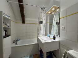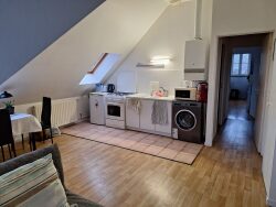 Pièce principale avec coin kitchenette, un dégagement desservant une chambre et une salle de bains avec WC. Chacun des appartements dispose d'une place de stationnement privative.